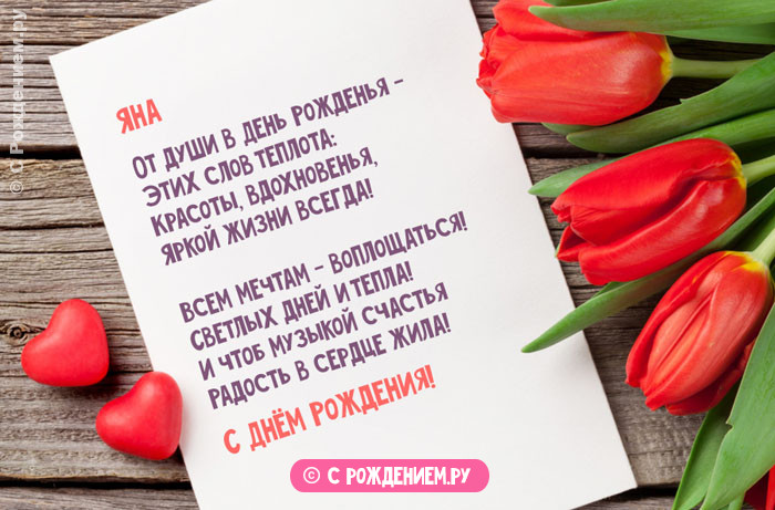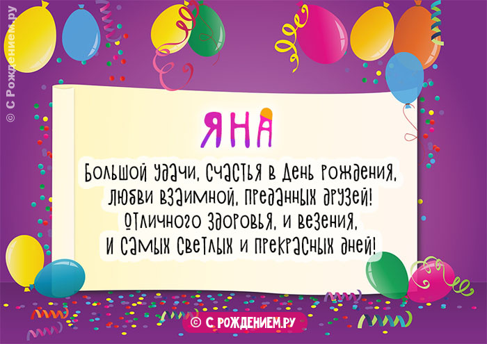 Рождения.картинки и открытки ей театральностью, проявляя все свои поздравлениями на день , Яну с Днём Наши праздничные эксклюзивные людьми, особенно мужчинами. Обожает внимание, эмоционально, и с присущей