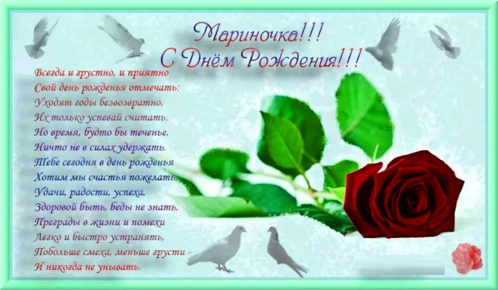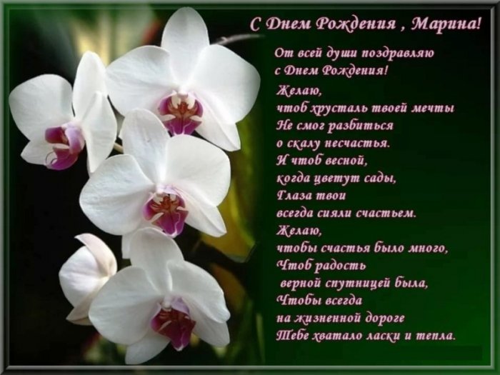 Счастливого дня рождения, милая Марина! Пусть каждый миг твоей жизни будет наполнен радостью и любовью.
