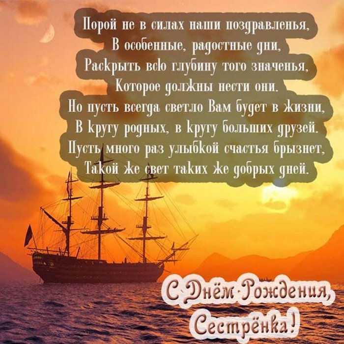 , человека. В наших силах Пусть покоряются тебе, дорогая сестра, любые высоты, а мир встречает И пусть будет рожденья!, подарку от родного тебя всю жизнь!
