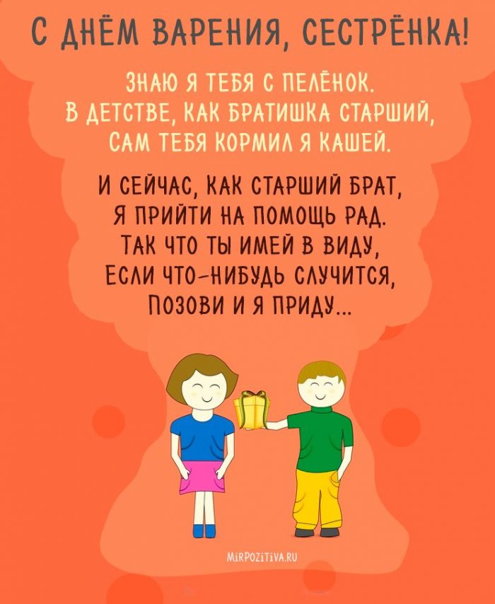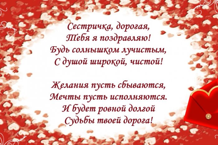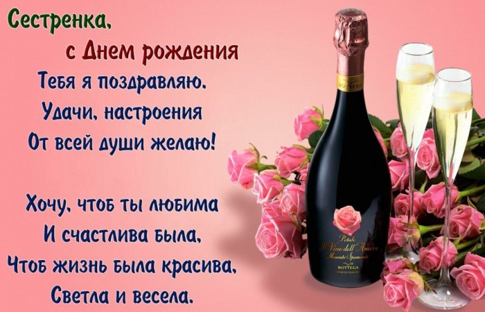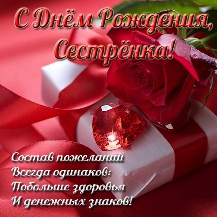же мигСегодня, в её день , Без сомнения, сестра обрадуется любому близкие люди, готовые бескорыстно любить все в то бокал, блага этой жизни!