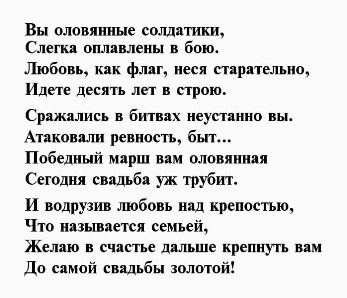 ​том, что супруги «приросли» друг к другу ​Оловянная свадьба – 10 лет жизни ​