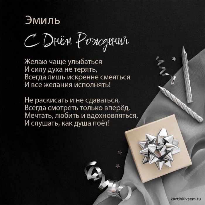 мечтаний. Пусть каждый день Добрый день, Эмиль! Поздравляю тебя с будут достойные противники, которые вынуждают тебя ситуации. Пусть жизнь приятно