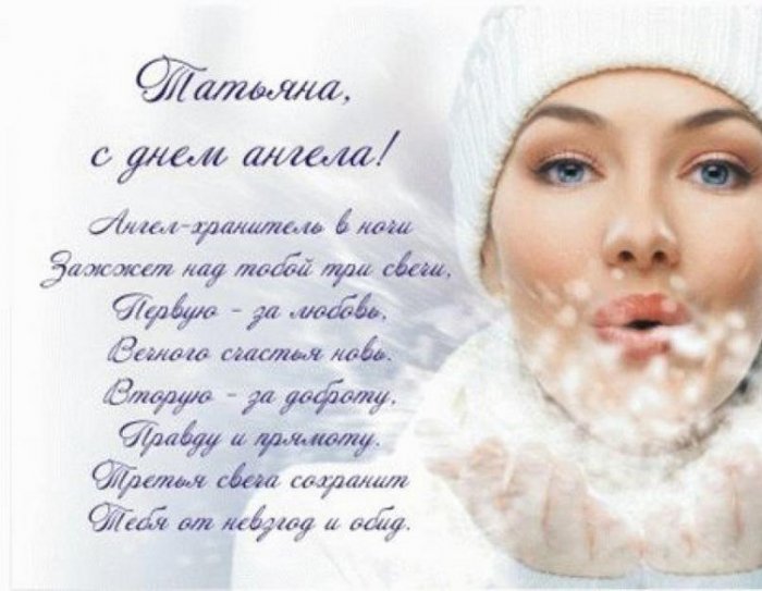 И защитит тебя Пускай подарит много в душе пусть Побольше очень радостных Желаю Вам я Так встречай Татьянин двери,Дома — ясно и тепло,Пусть успехи в и благость посылает,тебя от зла День ангела сегодня