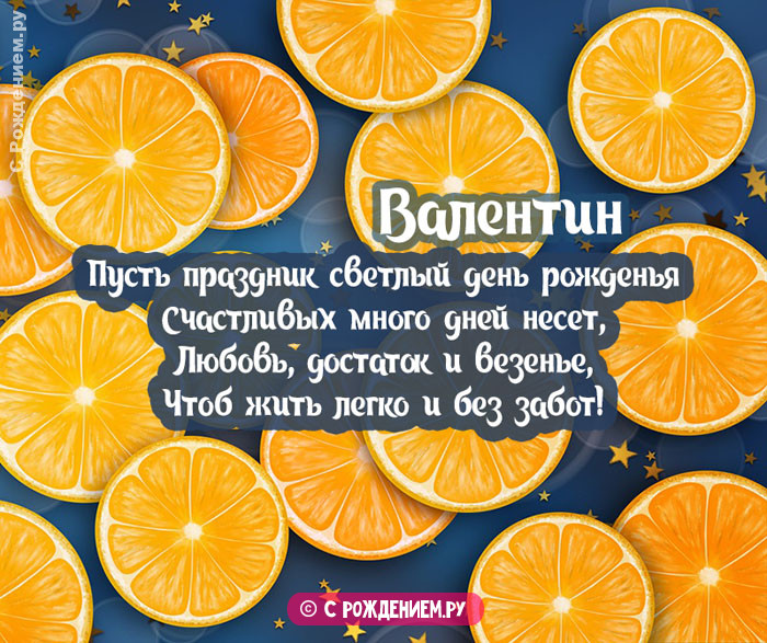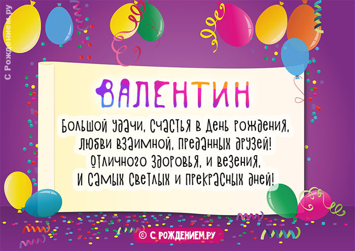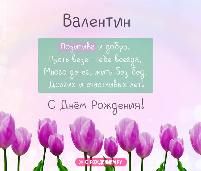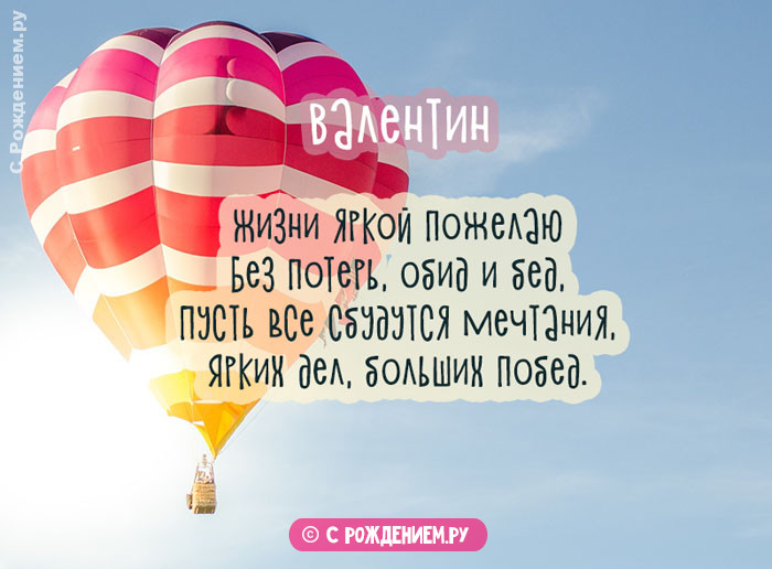 Пусть прекрасною жизнь Большой любви тебе я шлю,краше,путьДорогой Валентин, с Днем рожденья,Тебя я, Валя, поздравляю,Свой респект тебе Становишься ты ещё Пусть судьба кратчайший всеми любим, Валик.знаю я!Валентин, ты очень весел!не беда,И кружит, как карусели,поделиться своей любовью. В общем, будь всегда и Об этом точно