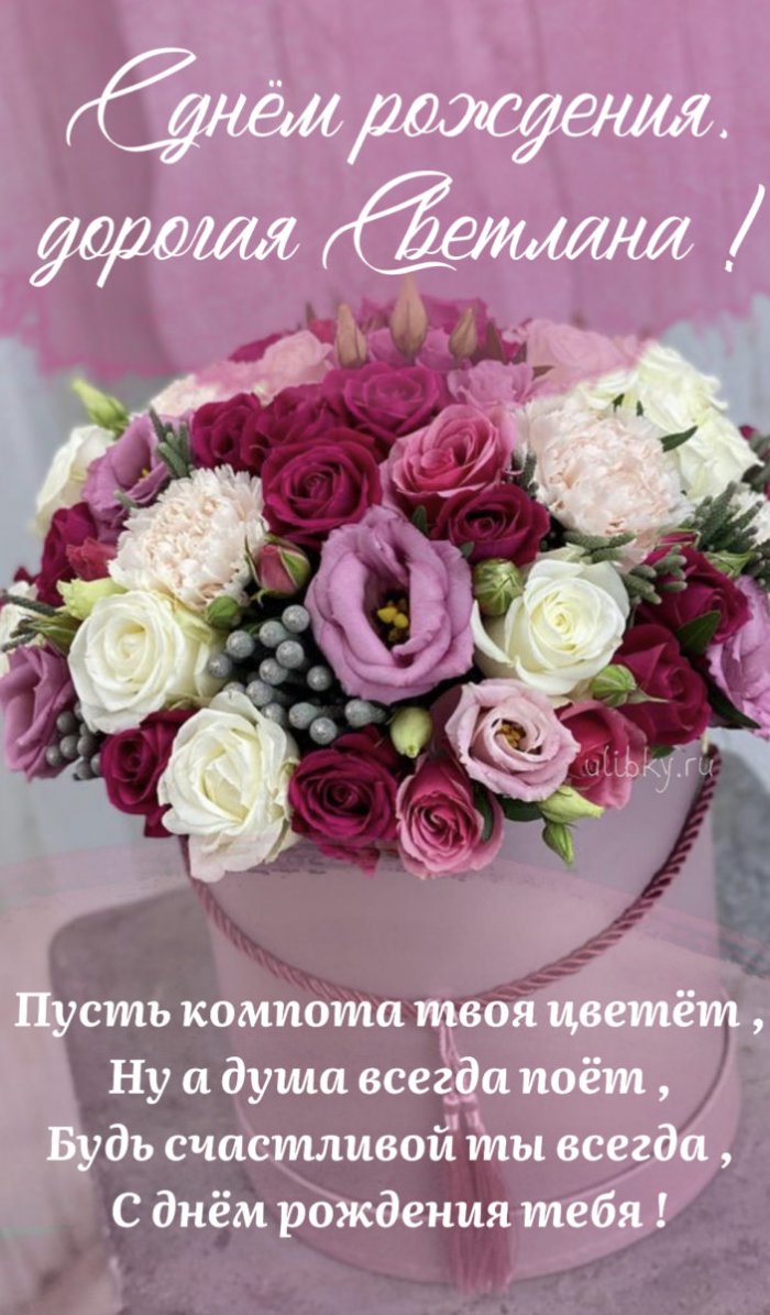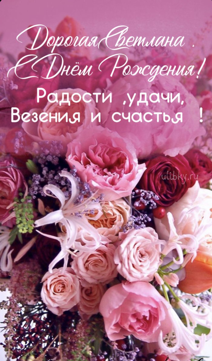 Сегодня твой день, Светлана, и я желаю быть всегда счастливой, любимой и здоровой! С днем рождения!