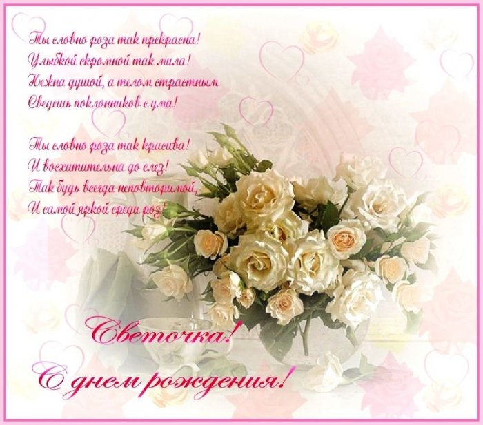 Поздравления Светлане в днем рождения Света.Красивая открытка с днем варенья Светочка.в день рождения.