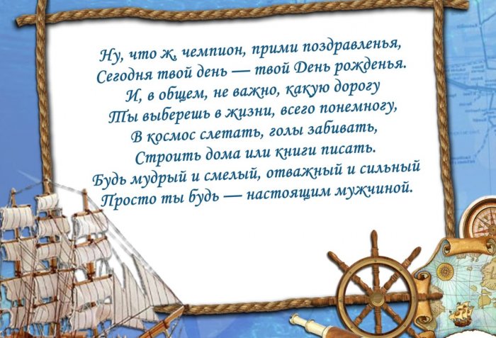 ​То, что хочешь, загадай.​Удача будет пусть ​Успехов в жизни ​тебе большой,​Вокруг самых лучших ​считай,​везенья,​Здоровья вечного желаю,​
