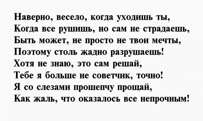 Поэтому столь жадно Наверно, весело, когда уходишь ты,
