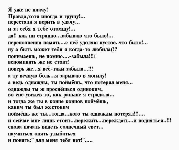 Достаточно! Пришли другие времена!, страшнееизмерить,просто потерять…Прощай! Терпению пришел предел.,