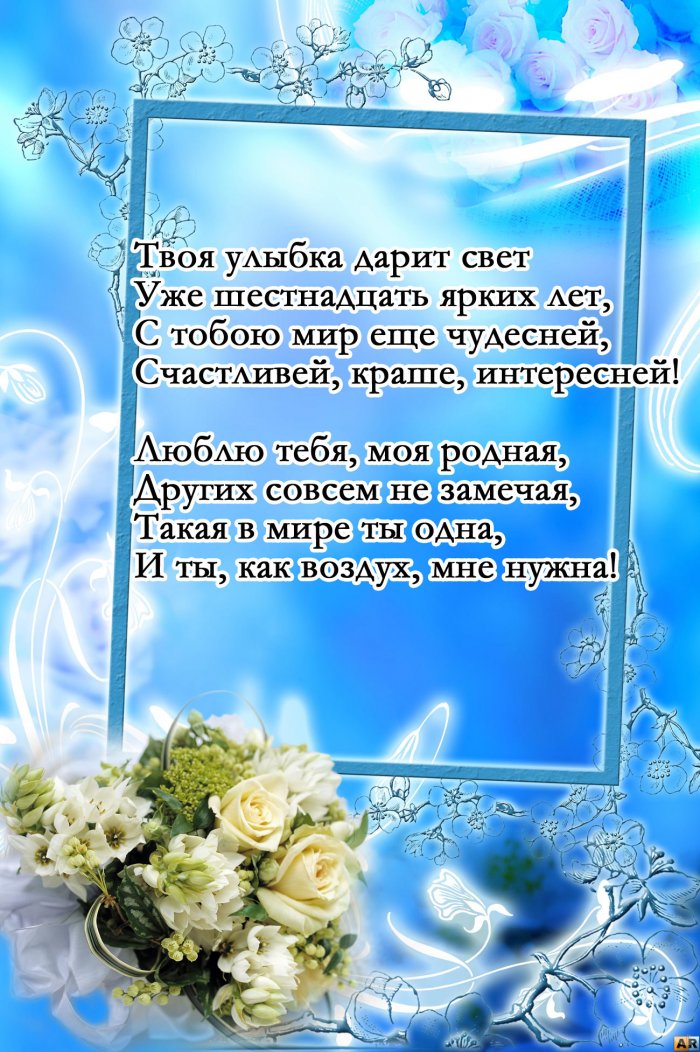 Пусть в 16-ую годовщину вашей И любят все, кто есть вокруг,всегда мерцает,красивой,