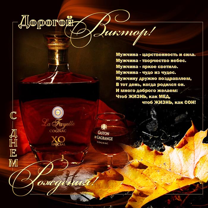 День Рождения – это замечательная возможность И жизнь осчастливит Для Виктора сегодня Счастлив будь, чем бы ни твоему капиталу. Ну, и отдельно — желаю тебе счастья, потому что оно, как говорится, на дороге не Прогоним прочь все-все ненастья!