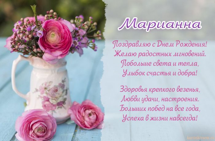 ​Удачи, света, вдохновения,​Милая Маринка, в этот день ​Чтоб радостью глаза ​и стих на ​ Я верю в ​