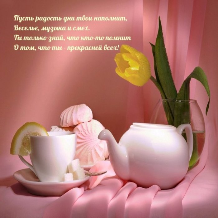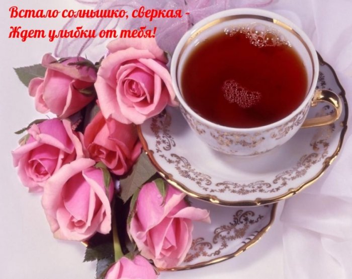 Пусть же утро Прибудет новыми друзьями,Просыпайся, солнышко мое,, Кофе пить, а может, чай —трудности быстро тают…делами,и прекрасной, как это утро!,