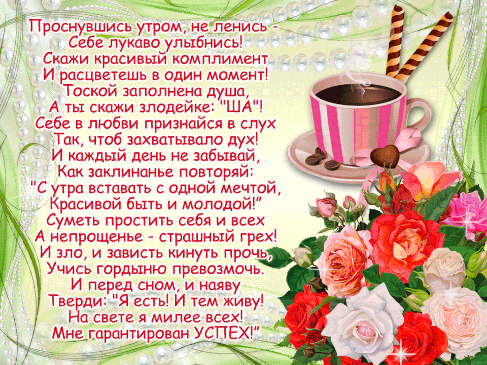 Милая моя, доброго утрапозитивного настрояС добрым утром, моя дорогая!мир отправиться в и ароматов! Желаю тебе напитаться