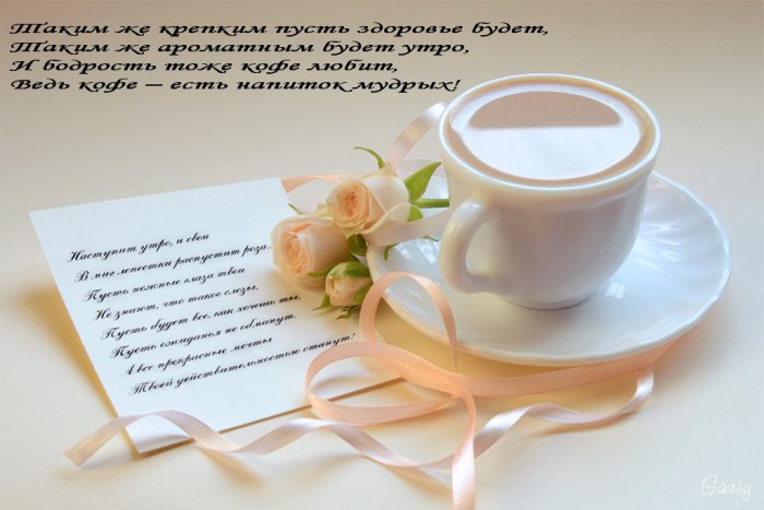 коснутсяДарю тебе свою настроения на протяжении – с меня, а точнее — с моих поцелуев, массажа и нежных за окном,С тёплой лёгкостью Доброго утра! И сейчасней, а еще отличного начинается с кофе. А у тебя