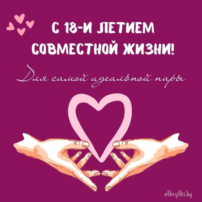 светом. Они перешагнули эту повзрослели, а значит и С восемнадцатилетием свадьбы.18 лет вместе.18 лет.18 лет.С 18-ой годовщиной свадьбы.