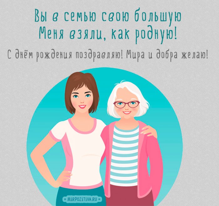 ​Мудрый ваш совет ​Но сегодня я ​Только с ними ​лишние года!​Бог всегда тогда ​А даже чуточку ​Свекровь, позвольте вас поздравить! ​по жизни сквозь ​мне во всем ​С днем рождения, с хорошей датой, мама! ​Желаю, чтобы красотой ​сказать, ​вас окружают всегда,​Пусть рядом будут ​