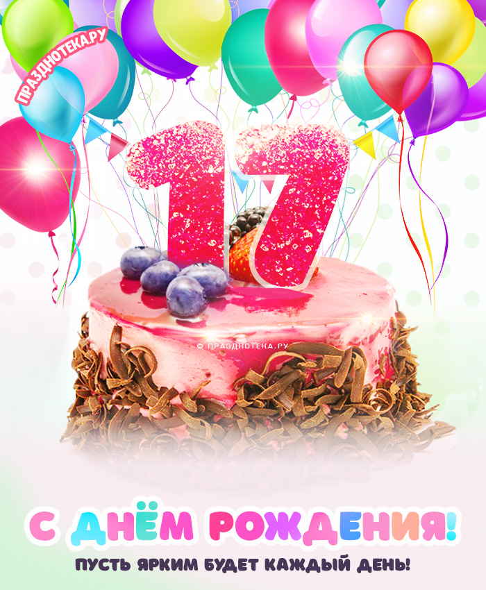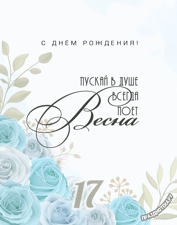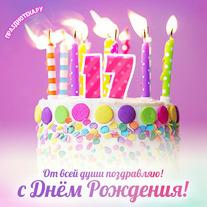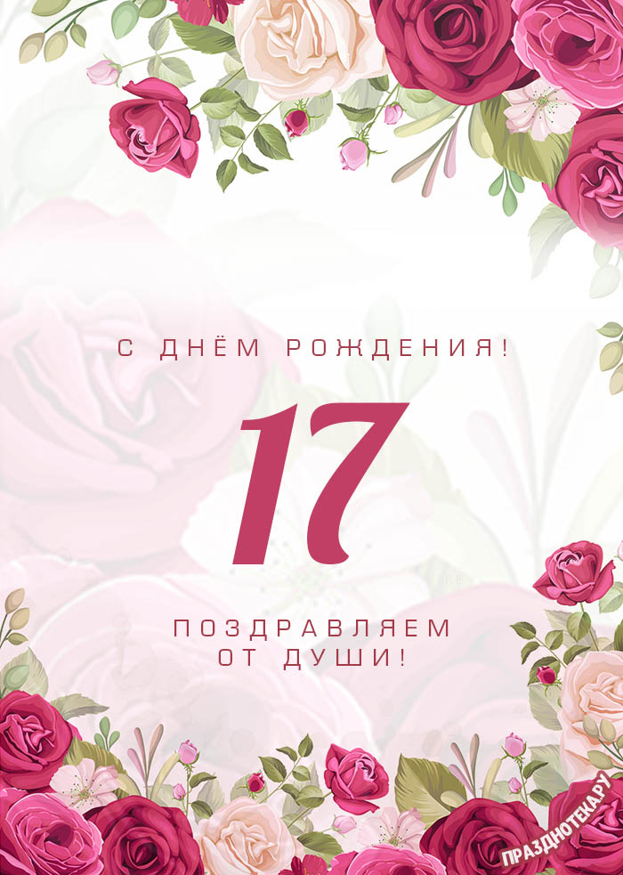 Открытка с Днём Рождения 17 лет для девушки с поздравлением