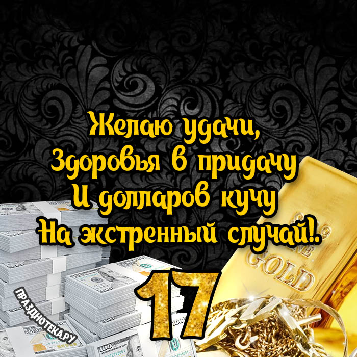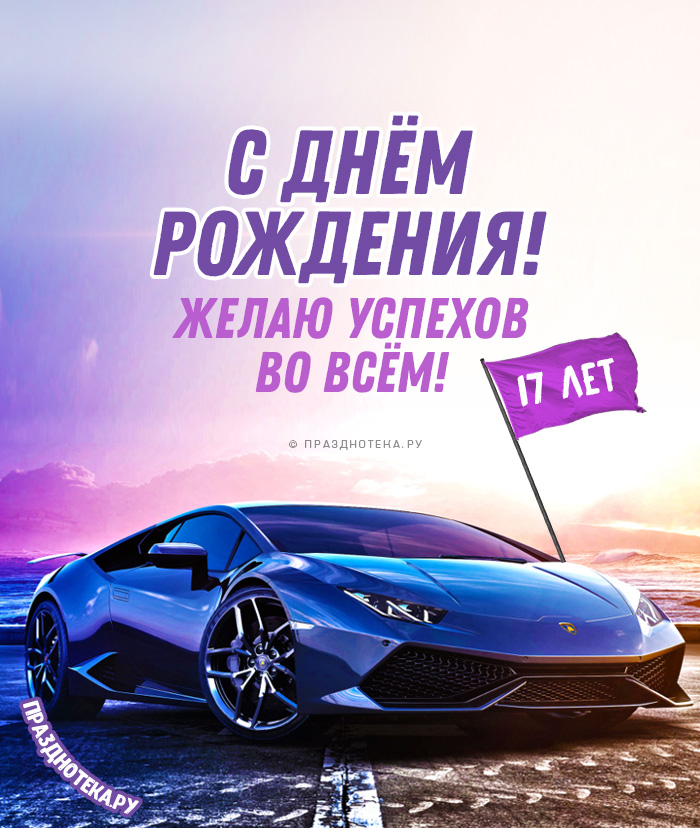 Открытка с Днём Рождения 17 лет для парня с пожеланием