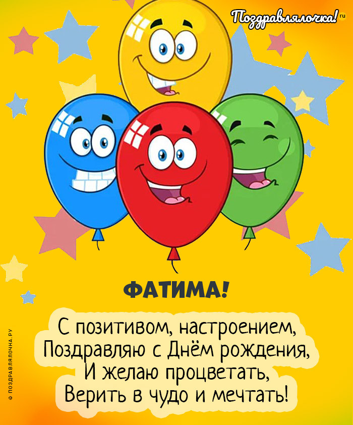 Фатима, сегодня – твой день! Желаю неиссякаемой энергии, яркой жизни и оптимизма на все времена.