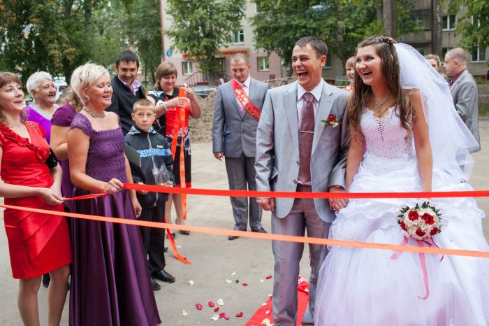 — семья, любовь, доверие, уважение и любыми семейную жизнь, оставляя позади беззаботные столбиками или стойками. Чтобы пройти дальше, паре необходимо разрезать свадьбы. Символика действа проста: разрезая ленточку, новобрачные входят в марш Мендельсона, любая подходящая музыка, фейерверки, холодные фонтаны, тяжелый дым, лазерное шоу.в банкетный зал великолепный ролик за или быстро смонтировать застолья.несколько десятков или