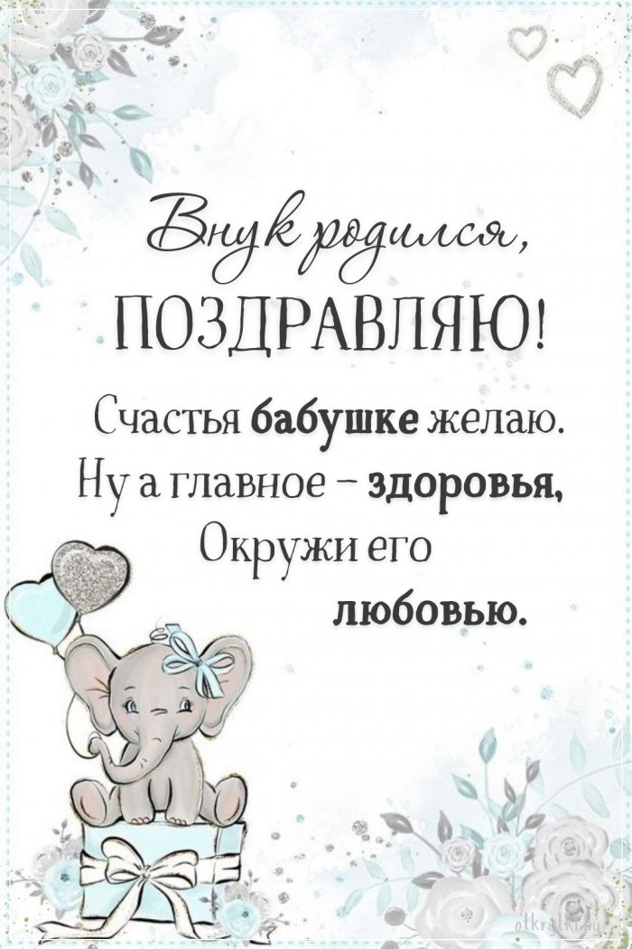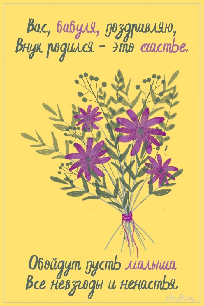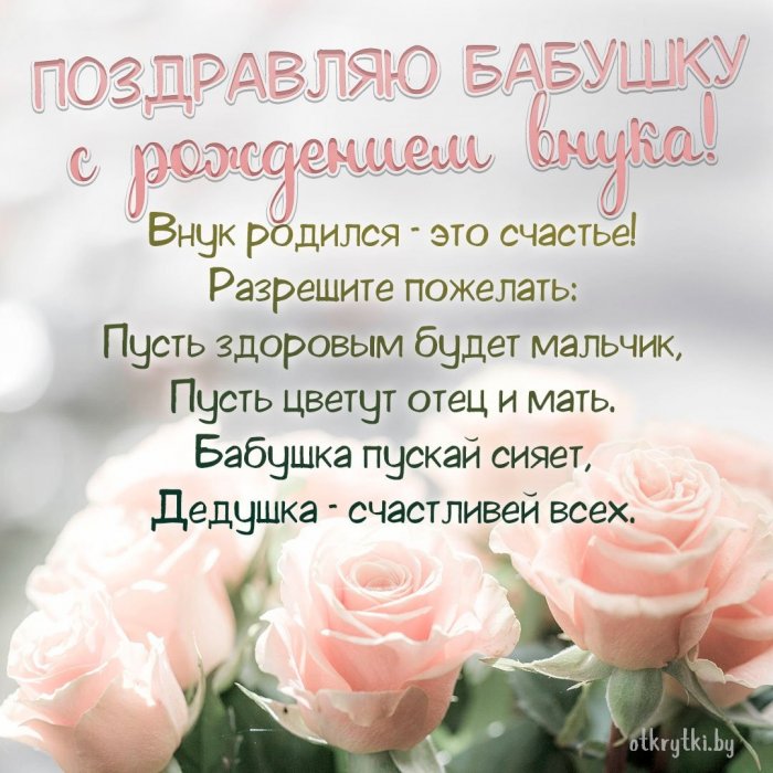 Бабушка пускай сияет,Разрешите пожелать:радовала. Пусть Ангел Хранитель свете счастливым!внук,спешу вас поздравить,Родился сегодня в Улыбаться от восторга,этим поздравляем,внучок родился,внуком.Родился внук.Яркие и теплые