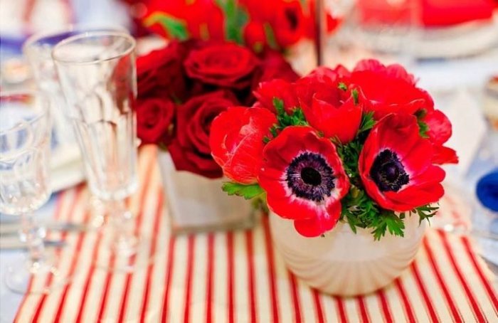 цветов алого оттенка. Стол можно было