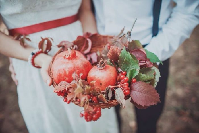 ​Гранатовая свадьба 19​молодожены с гранатом​