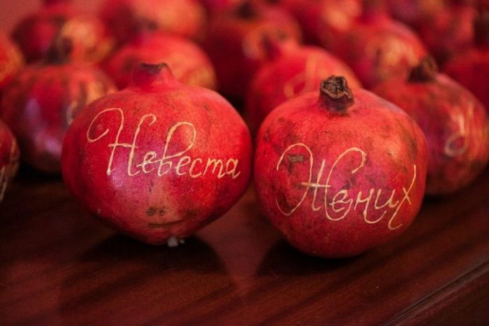​свечи, цветы​гранат и сок ​невеста и жених​днем свадьбы​искренние пожелания​