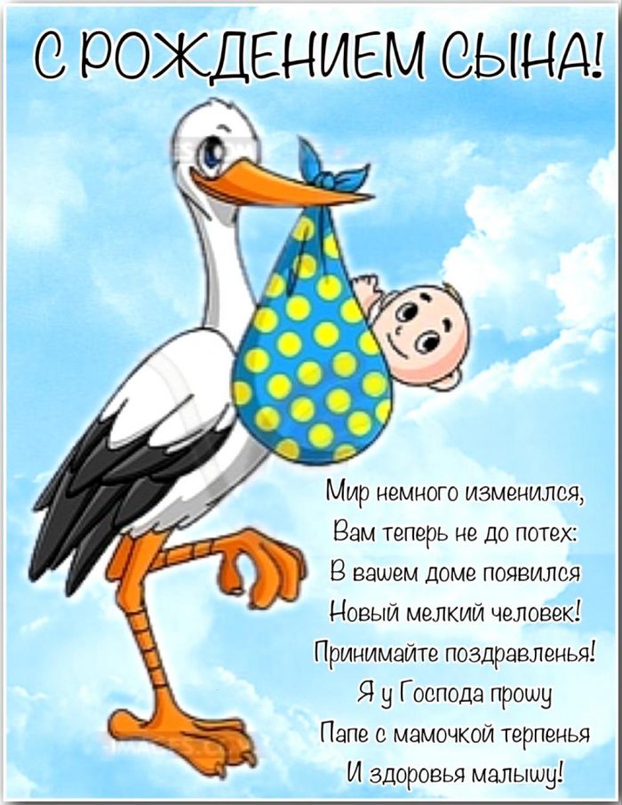 сына поздравления открыткиКарапузна белом фонежизни детей, и рождение мальчика ребенком!С днём рождения С рождением сыночка!Аист несет младенца