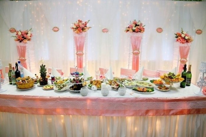 в виде фуршета. Отлично подойдут небольшие украшения на голову