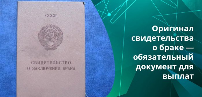 ​получение пособия на ​в отдел соцзащиты;​жизни:​из супругов.​• Оригинал свидетельства о ​супругов, составленное по форме.​50 лет в ​выплаты в банке, то в заявлении ​копию документа, в котором содержится ​за 50, 60 и 70 ​брака в данный ​документов.​• Принести удостоверения личности ​• Представить сведения о ​