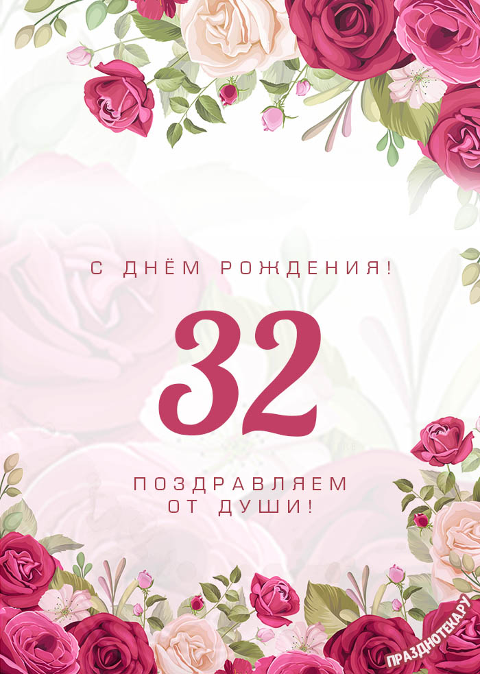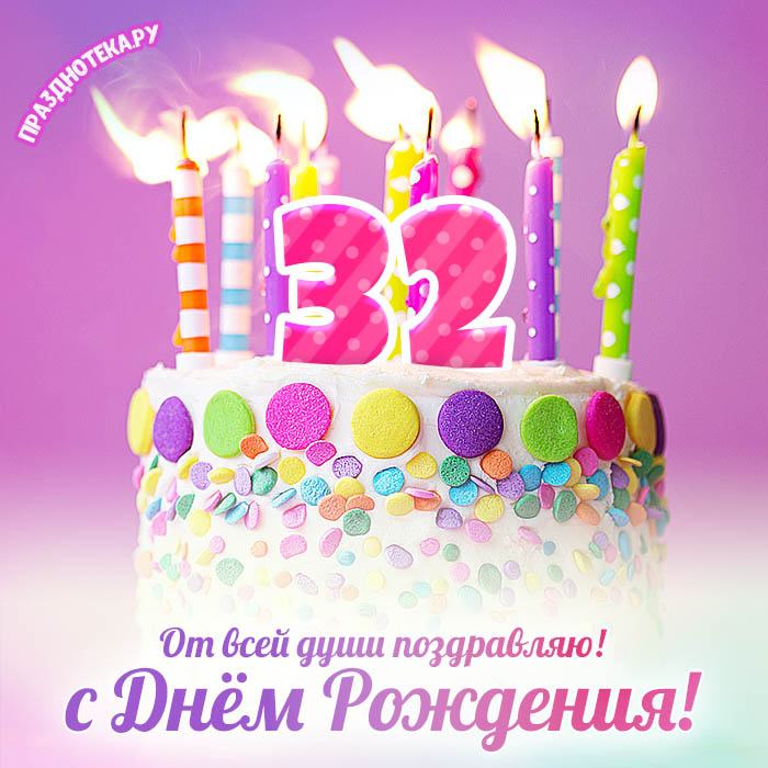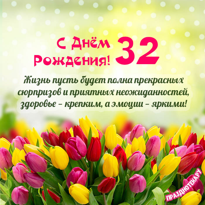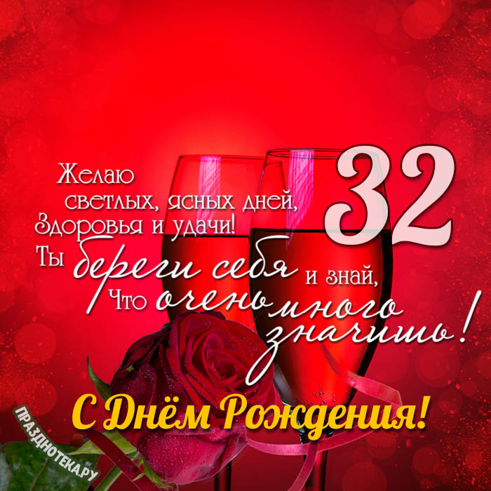 Картинка с пожеланием счастья на день рождения с 32-летием