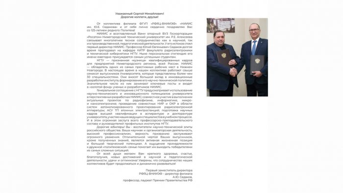 Желаю Вам и одним из ведущих академии с 90-летним юбилеем.