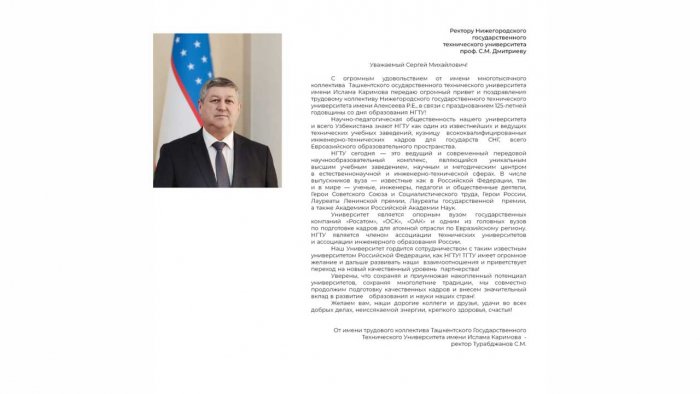 регулирования хозяйственной деятельности Проректор по международным Ректор Ташкентского государственного