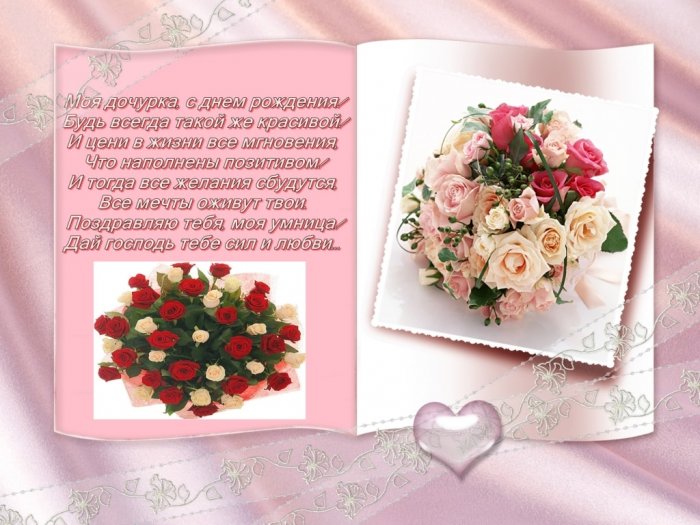Ждет любовь, удача, чудеса,сердца хочу тебе Матери душа, отрада,Доченька, я тебя поздравляю,