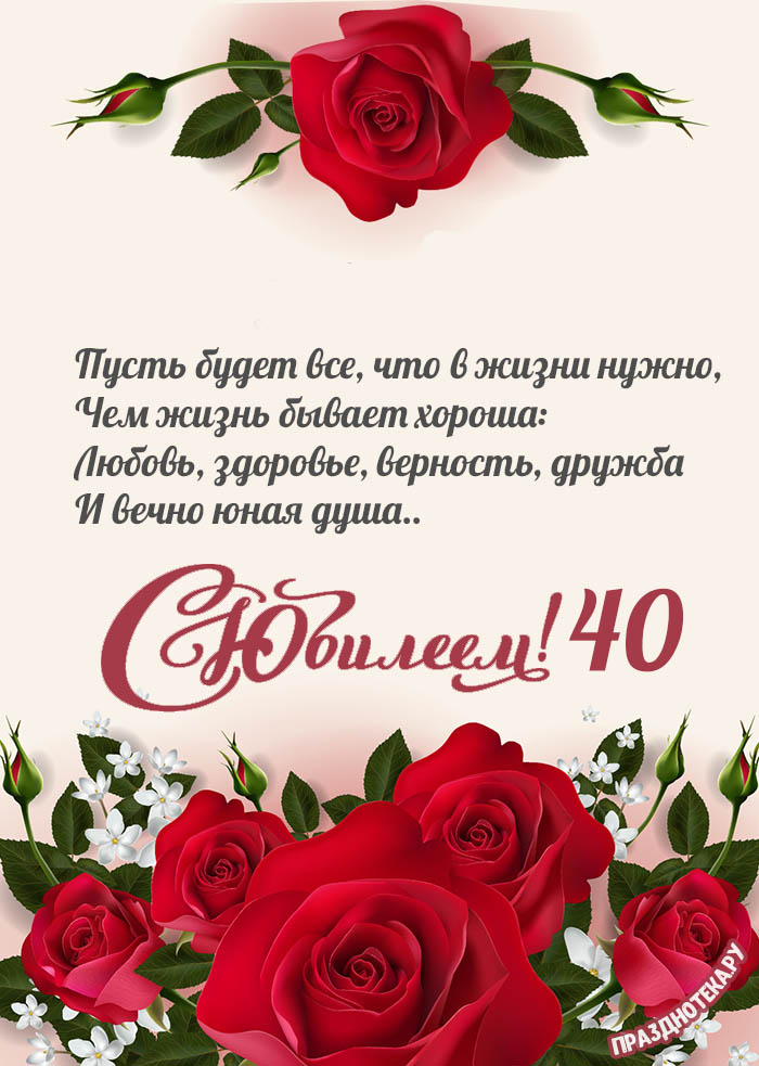 40 летним юбилеем. Скачать бесплатно, поздравить от души.Открытки Женщине с