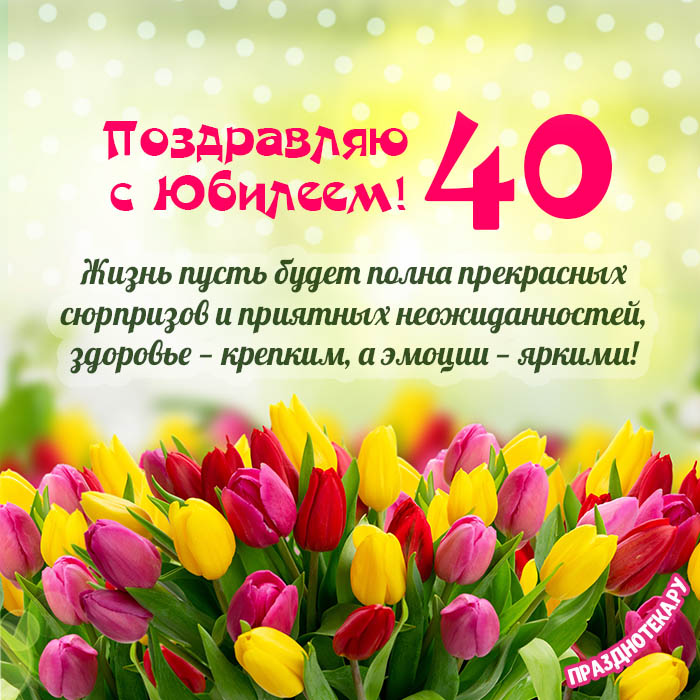 Красивые открытки, картинки с Юбилеем на 40 лет девушкам и парням. Часть 1-ая.