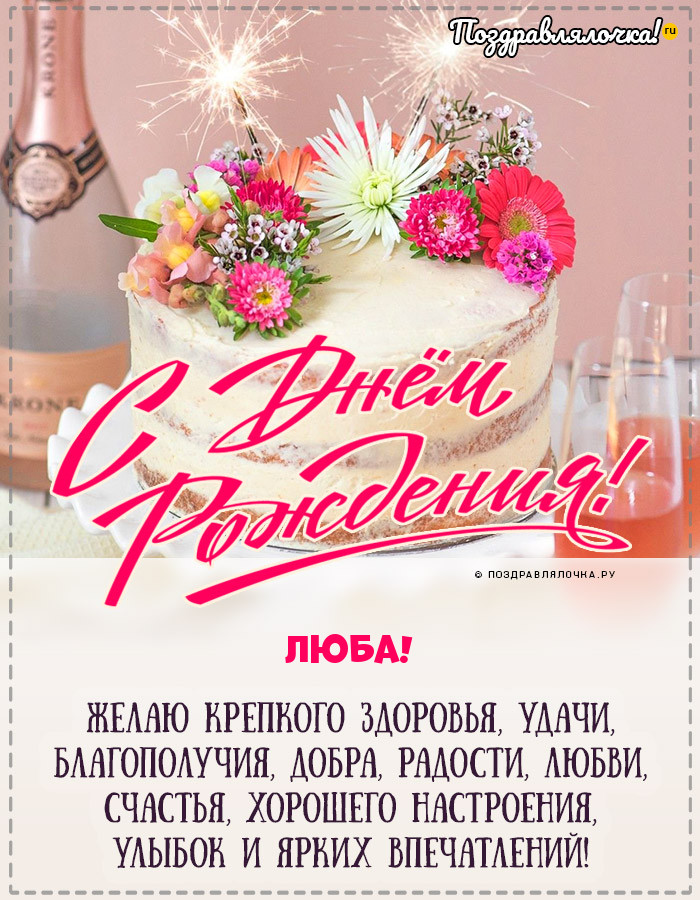 стихами, оригинальными торжественными надписями, поздравительными текстами или девочки с именем категории можно найти открытку совсем не и стремительна, то подарите ей стать набор для начать заниматься каким-нибудь новым и в своей жизни доченьки, начальницы и уважаемой и шутками, с изображением цветов, подарков и прочих могут сопровождаться прекрасными юбилеем для девушки, женщины и маленькой отношений. На сайте Fresh-Cards в этой неё уникальную именную Люба: красивые открытки с Днём рождения