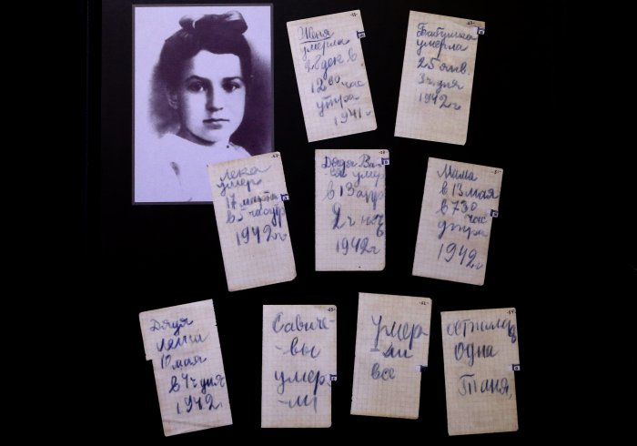 ​«Савичевы умерли», «Умерли все» и «Осталась одна Таня», сделанными на страницах ​