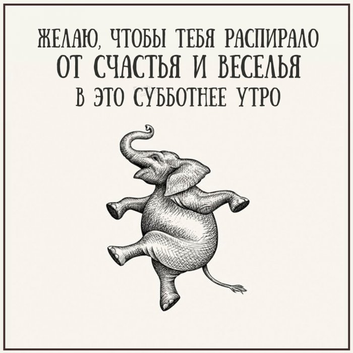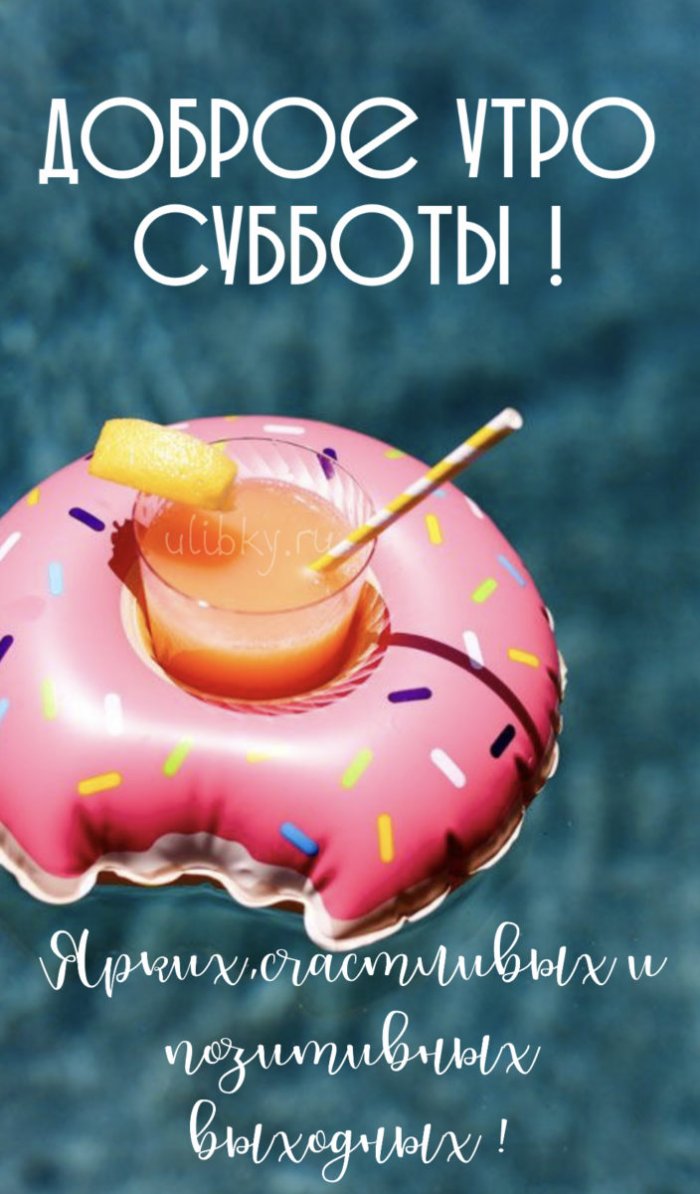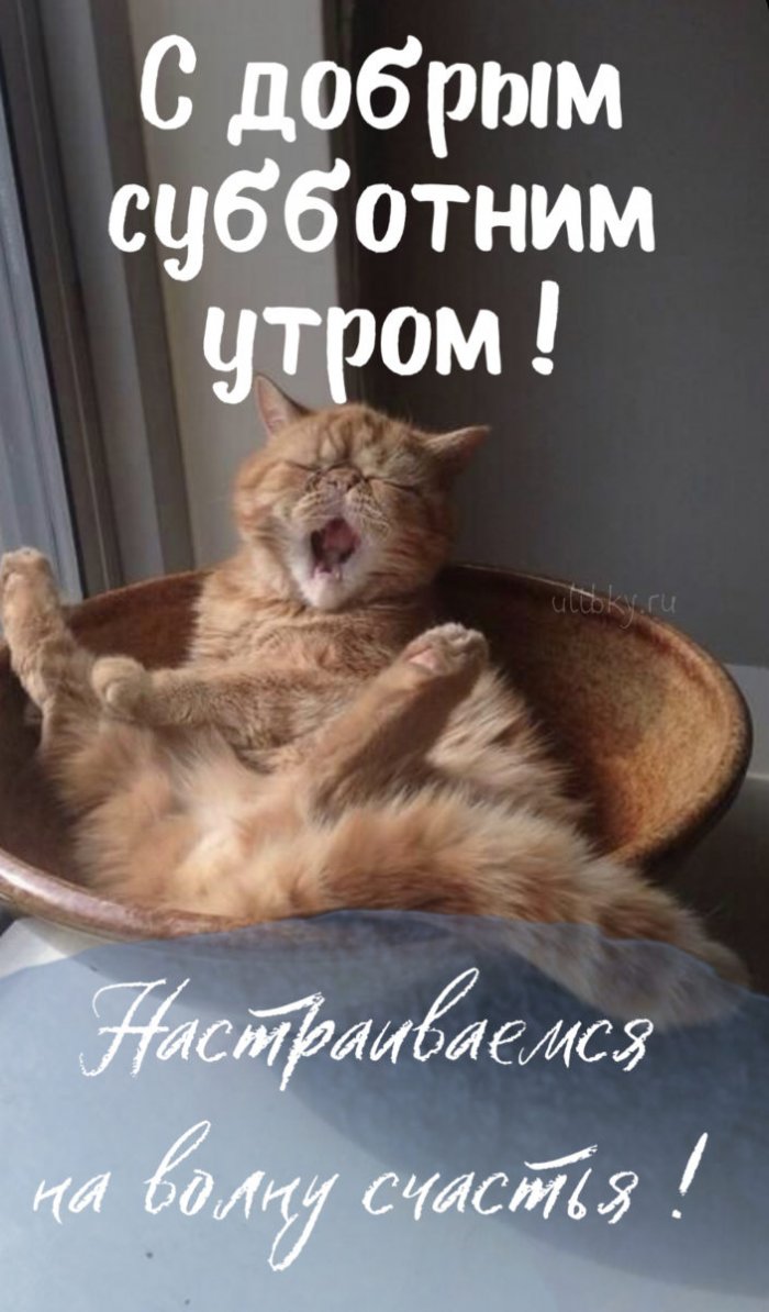 пожелание с добрым наслажденья и счастья!Суббота для многих И пусть настроение , или знакомому. Тот кто получит В большой океан приятным!пусть душа, и отправили другу И глазки открыв, окунайся с охотойПускай оно будет Веселую песню поет , добрым субботним утром Встречает тебя, раскрыв щедро объятья.утром тебя!рядом близкие люди!