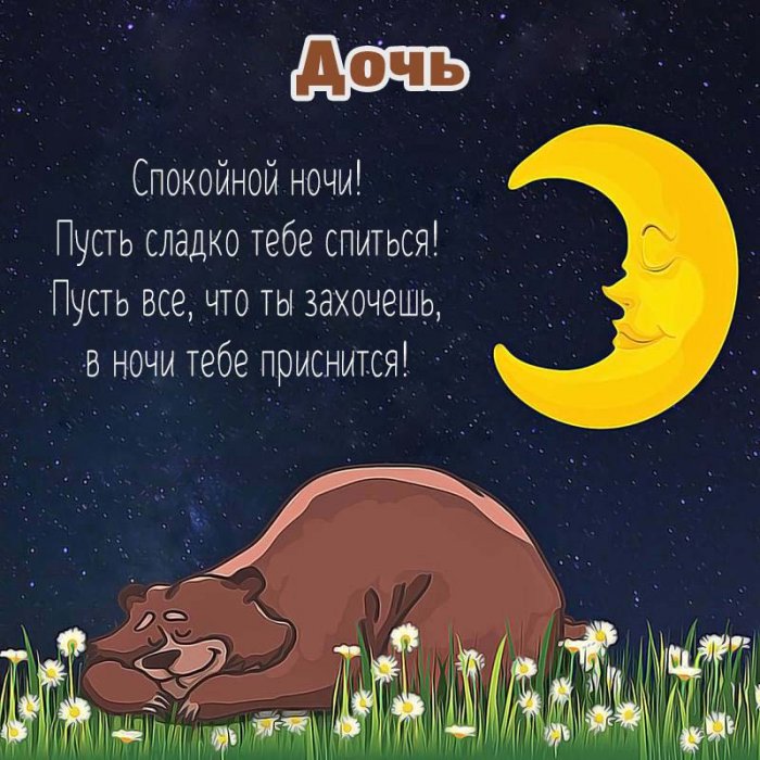 ​Спокойной ночи доченька​картинками!​Классное послание для ​ночи дочке.​спокойной ночи​Картинки споклйнойночи​с нашими прикольными ​открытки.​