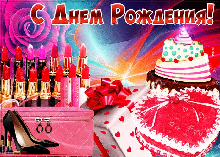 Открытки и картинки мерцающие анимационные блестящие GIF. День рождения для девушки.