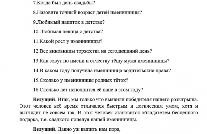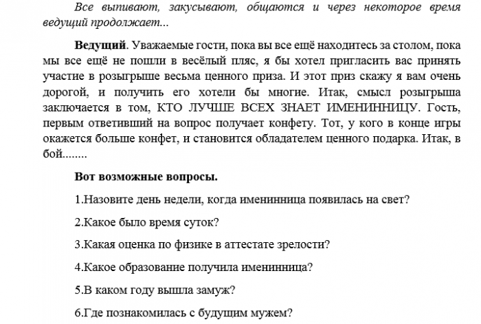 Конкурсы для сценария день рождения женщине