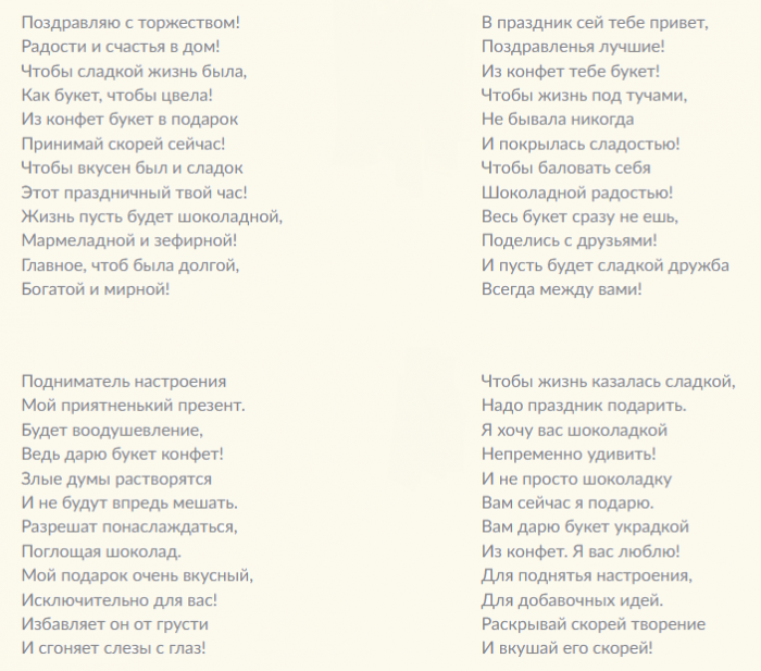Красивые слова к вручению сладкого подарка с цветами из конфет: в стихах и прозе