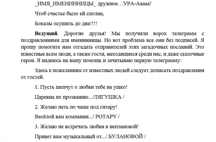 Веселый сценарий день рождения женщины