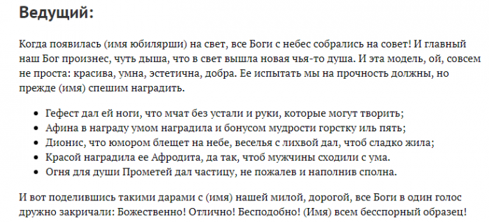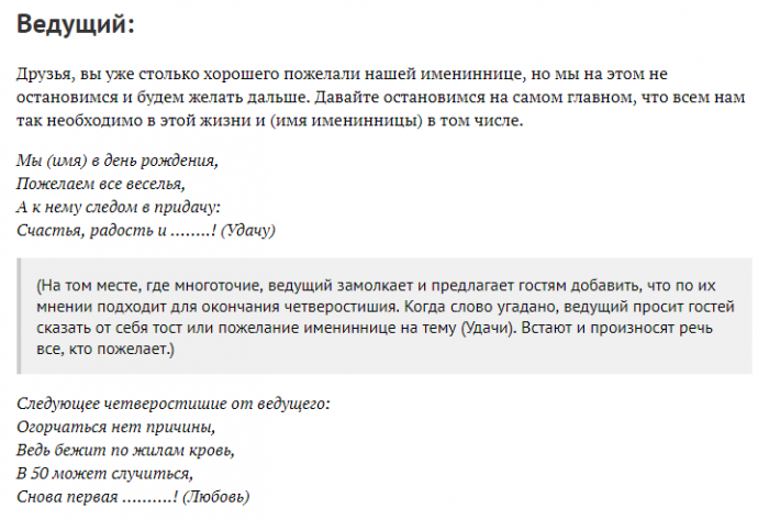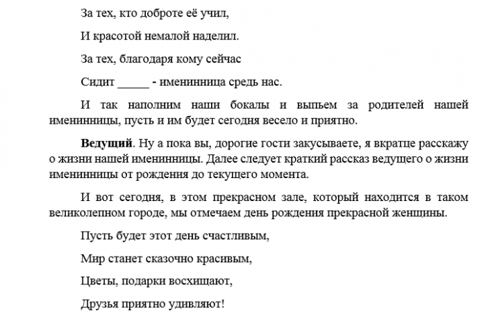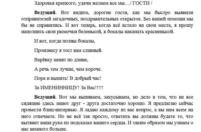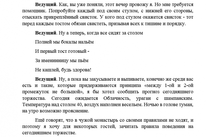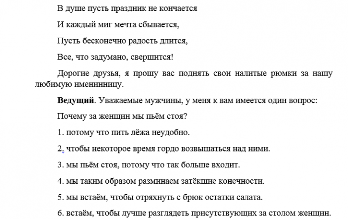 Сценарий с юмором день рождение женщины