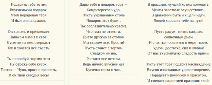 Какие слова можно сказать к вручению сладкого подарка с тортом: в стихах и прозе