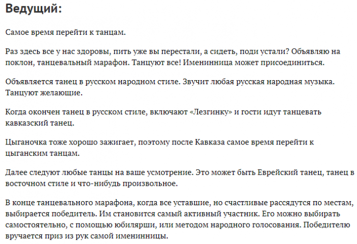 Прикольный зажигательный сценарий день рождения женщине