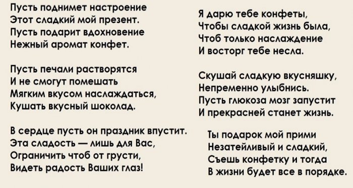 Шуточные и прикольные слова поздравления к сладким подаркам